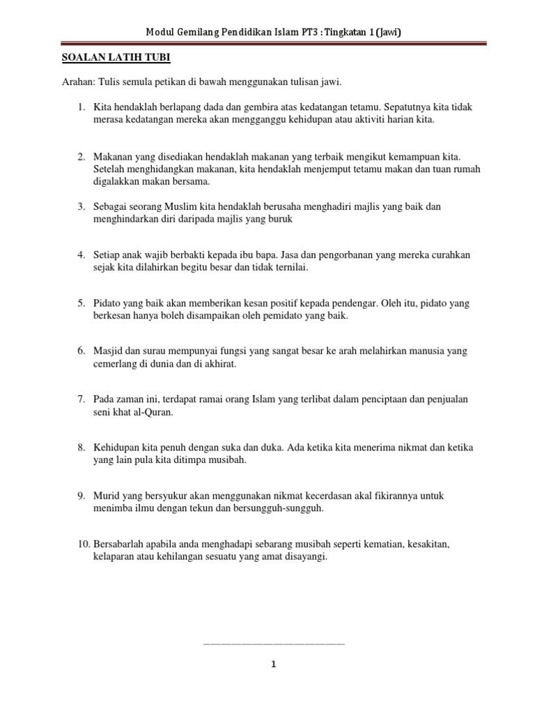 Contoh Soalan Jawi Tingkatan 1 Rasmi Sud
